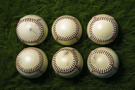 Capturing the Essence of Baseball: Stunning Close-Up Shots of Four Baseballs Resting on Fresh Green
