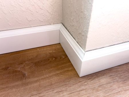 Baseboard or skirting board as part of house interior, emphasizing finishing, decor detail, and construction styling.