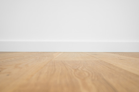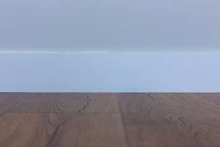 Copyspace background with empty white wall with hardwood floor with plenty of copy space for text or advertising