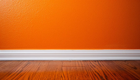 Contemporary orange wall backdrop with copy space in mock up room on brown parquet floor