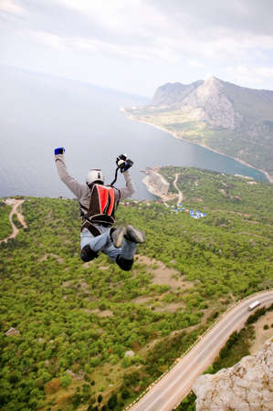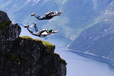 A man jumps from a cliff into the abyss.