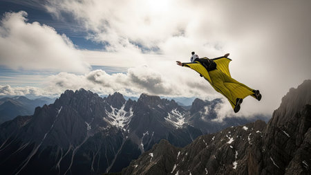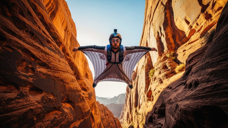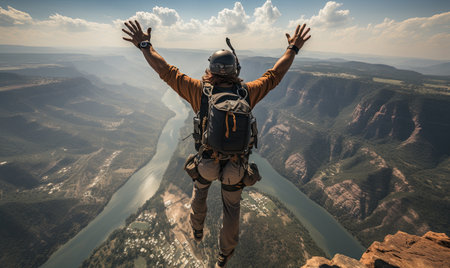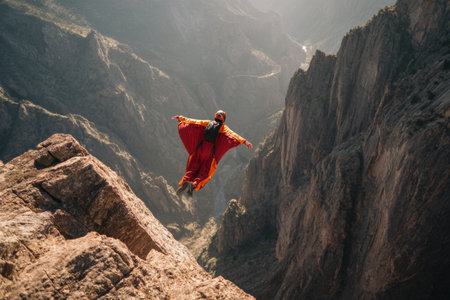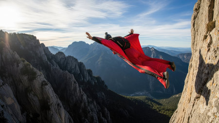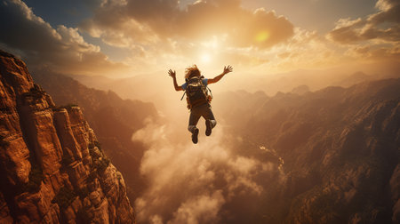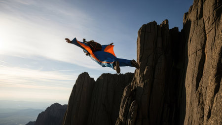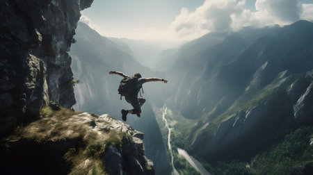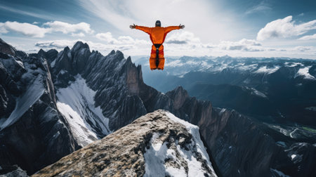 base jumper leaping from a high cliff, created with generative ai