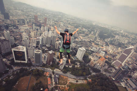 A BASE jumper in jumps off from KL Tower