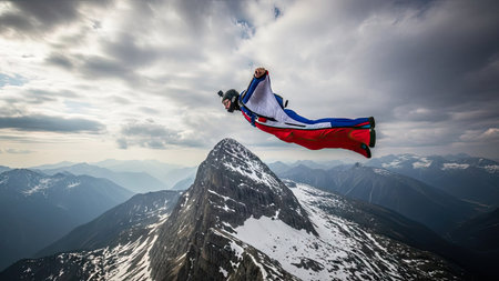 Wingsuit flyer photo realistic illustration - Generative AI.