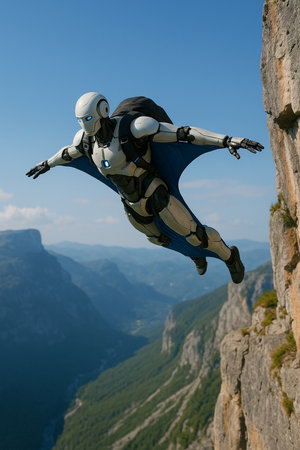 Robot Jumping Off Cliff With Wingsuit 091125