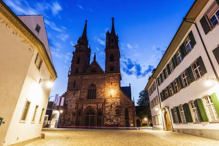 Basel Minster at night. Basel, Basel-Stadt, Switzerland.