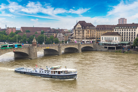 panorama of Basel, Switzerland , august, view from river Rhine