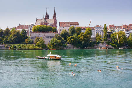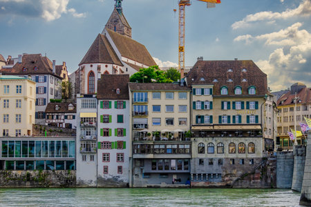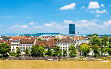 Beautiful architecture of Basel, Switzerland, at the River Rhine on a sunny day
