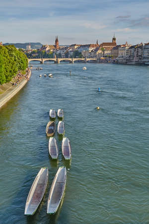 BASEL, SWITZERLAND - June 16, 2017: Rhine river in Basel, Switzerland