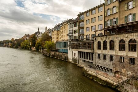 Basel architecture along Rhine River. Basel, Basel-Stadt, Switzerland.