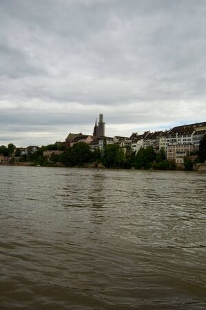 basel city view from rhine river looking at centre