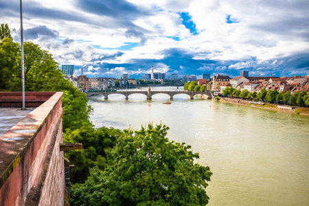 Basel view from upper town to Rhine river and bridge, Switzerland