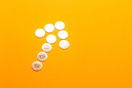 Bitcoin gold coins in the form of arrows tend up on an orange background