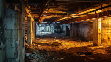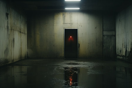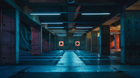 A blank closed underground hall, exuding mystery and concealed potential. What secrets lie within this secluded space