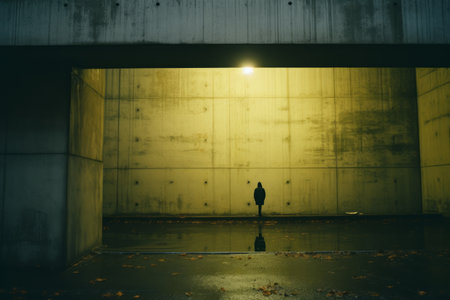 a man standing in an empty dark tunnel