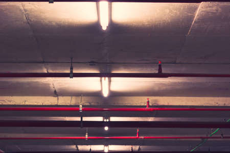 Pipe Systems, pipeline on building ceiling. tone cinematic