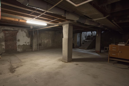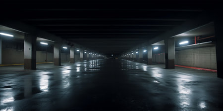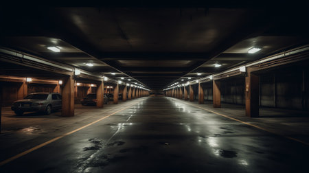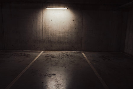 underground dark parking garage empty parking spaces