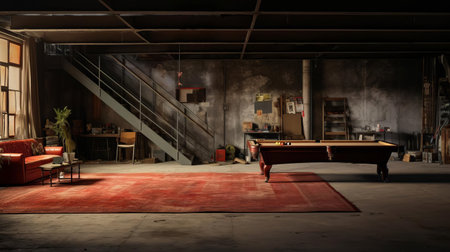 this rec room, in dire need of renovation, features outdated furniture, worn-out carpeting, and faded walls, begging for a fresh coat of paint, new flooring, and modern decor to transform it into a cozy entertainment space perfect for family gatherings and social events. ai generated