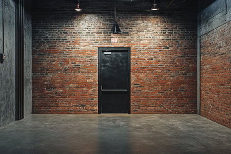 Empty room with brick wall and black door. Mock up, 3D Rendering