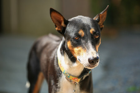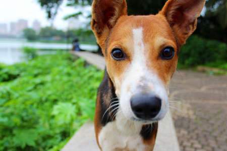 Basenji dog portrait outdoors. Alarmed by opinion. Close-up