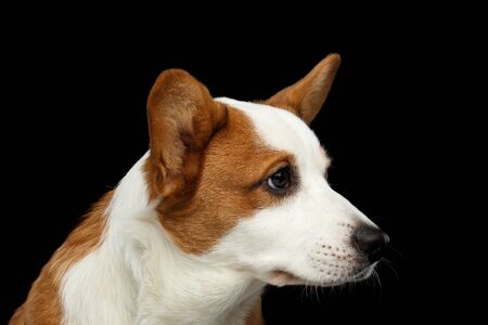Close-up Portrait Red Welsh Corgi Cardigan Dog with cute face on Isolated Black Background, Profile view
