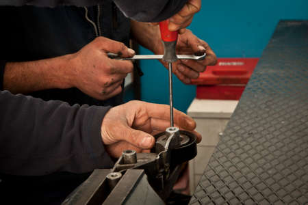 auto mechanic working on car engine in auto repair shop, maintenance concept