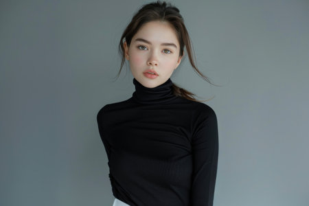 Confident in her style Attractive young woman looking at camera while sitting against grey background : Generative AI