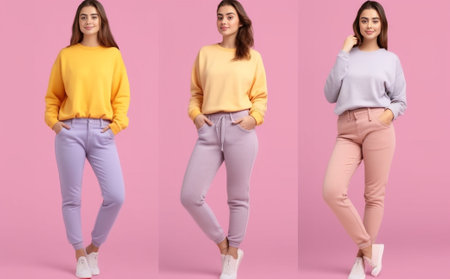 Stylish Young Woman in Trendy Streetwear Against Vibrant Background
