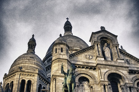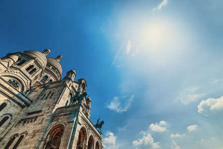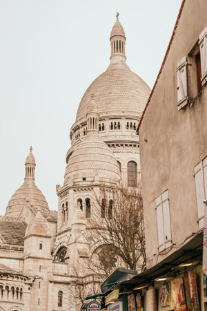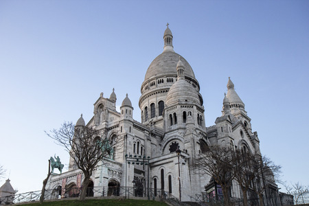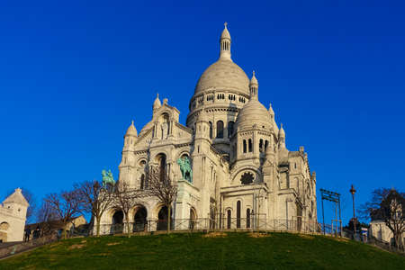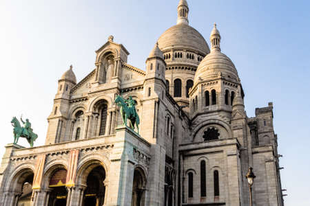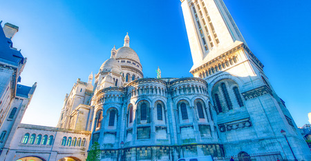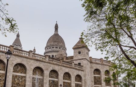 Ancient Basilica of the Sacre Coeur on Montmartre Hill, dedicated to the Sacred Heart of Jesus in Paris, France.