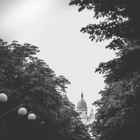 Beautiful view of the dome of the Sacre-Coeur in Paris in black and white