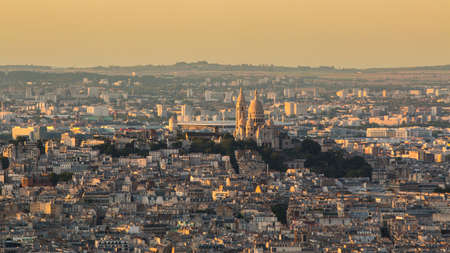 PARIS FRANCE Basilica of the Sacred Heart of Jesus. Seen from Montmartre hill in Paris