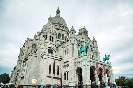 PARIS - OCTOBER 12: Basilica of the Sacred Heart of Paris (Sacre-Coeur) on October 12, 2014 in Paris, France. A popular landmark, the basilica is located at the summit of the butte Montmartre, the highest point in the city.