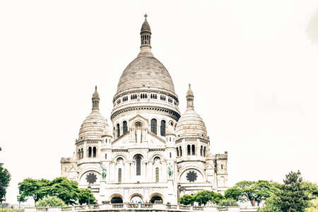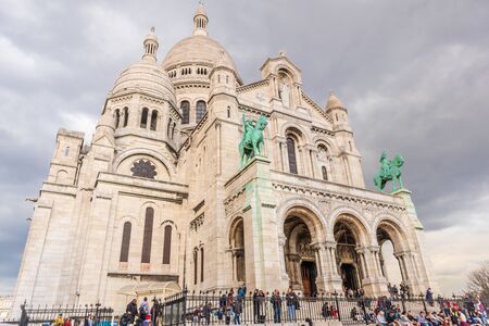 Paris, France - APRIL 8, 2019: View of Sacre Coeur Basilica on a cloudy day. Basilica of Sacred Heart. Paris, France, Europe