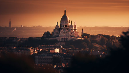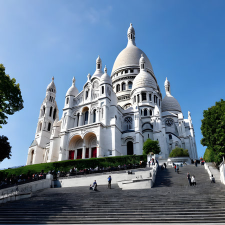 Iconic Parisian Basilica with Digital Network Overlay A Symbol of Tradition and Technology