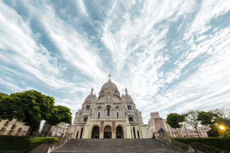 Basilica of Sacred Heart (Basilique du Sacre-Coeur) on Montmartre Hill, Paris, France. Beautiful architecture of Paris