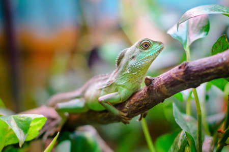 Green skin lizard looking Chinese water dragon. High quality photo