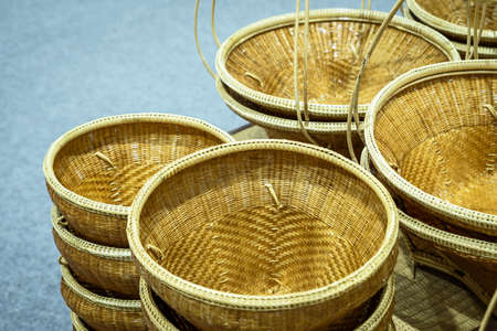 Colorful handwoven baskets from Dubaitraditional markets. Copy space