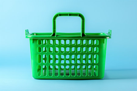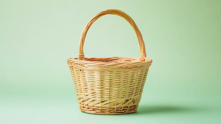 An empty wicker basket displayed against a light green background, highlighting its natural craftsmanship and minimalist design perfect for storage or decor.