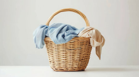 Overflowing laundry basket. Household chore concept on white background --ar 16:9 --v 6 Job ID: 2ebdf7bc-370b-41b8-b6fa-6f1c1ecb4144