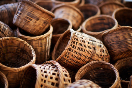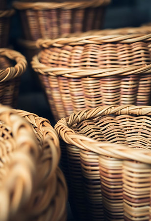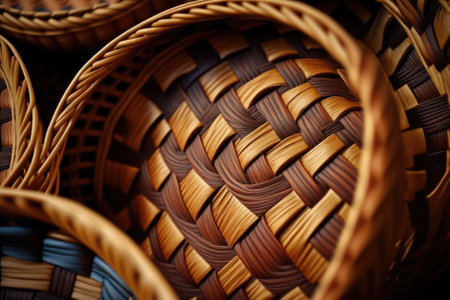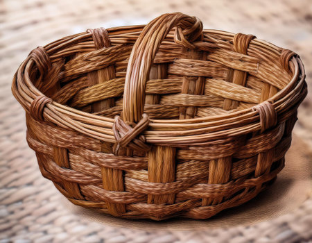 Close-up illustration of a handwoven wicker basket made from natural fibers, emphasizing texture and craftsmanship. Perfect for topics related to storage, home decor, and traditional crafts.