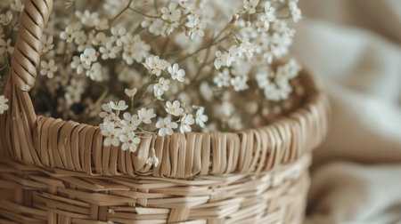 A beautiful woven basket designed for storage and decoration, featuring a natural look on a soft colored background, perfect for organization.