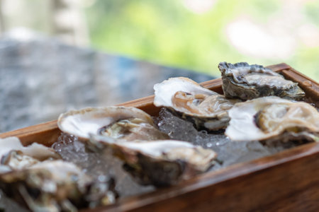 Freshly Shucked Oysters Served on Ice at Outdoor Seafood Restaurant