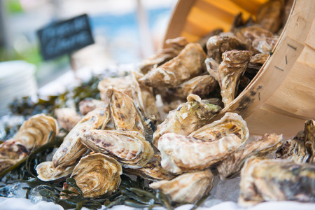 Jouy en josas; France - june 3 2018 : Normandie oyster at the farmhouse market