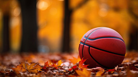 Basketball on autumn leaves with dynamic fluttering scene