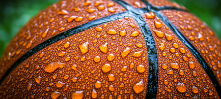Macro Detail of a Basketball with Water Droplets, Capturing the Essence of Professional Team Sports