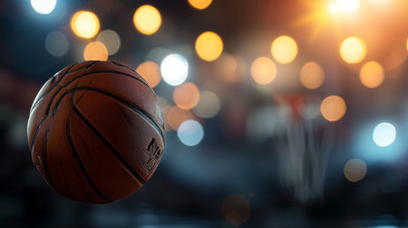 basket ball on the blurred dark background. Generative AI