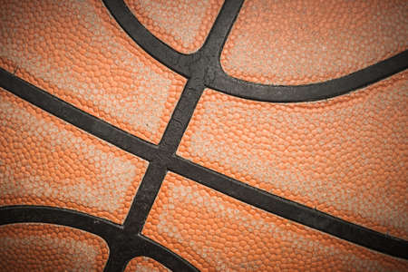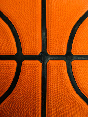 Closeup detail of basketball ball texture background. Sports equipment concept.