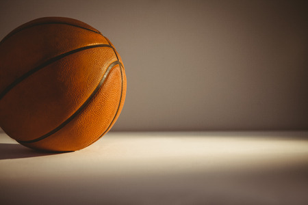 Composition of orange basketball with white spots of light and copy space. sport and competition concept digitally generated image.
