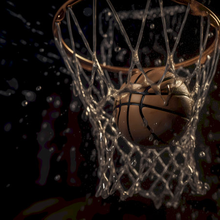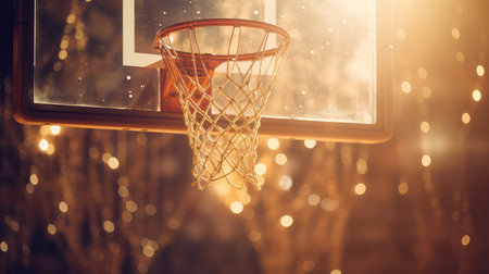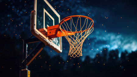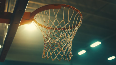 This close-up image showcases a basketball hoop and net against a dark background, perfect for sports enthusiasts and fitness content or promotional material.