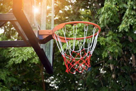 Basketball hoop on outdoor shooting target, blurred and sunlight edited background. Soft and selective focus on basketball hoop.